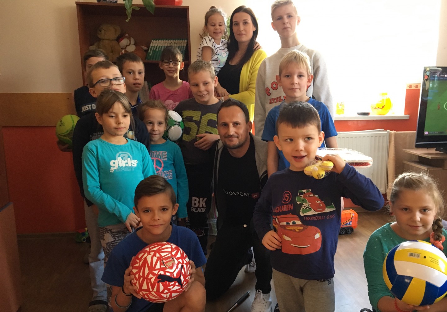 Dostarczyliśmy dzieciom: piłki, piłkarzyki, rzutki na rzepy oraz górę słodyczy.