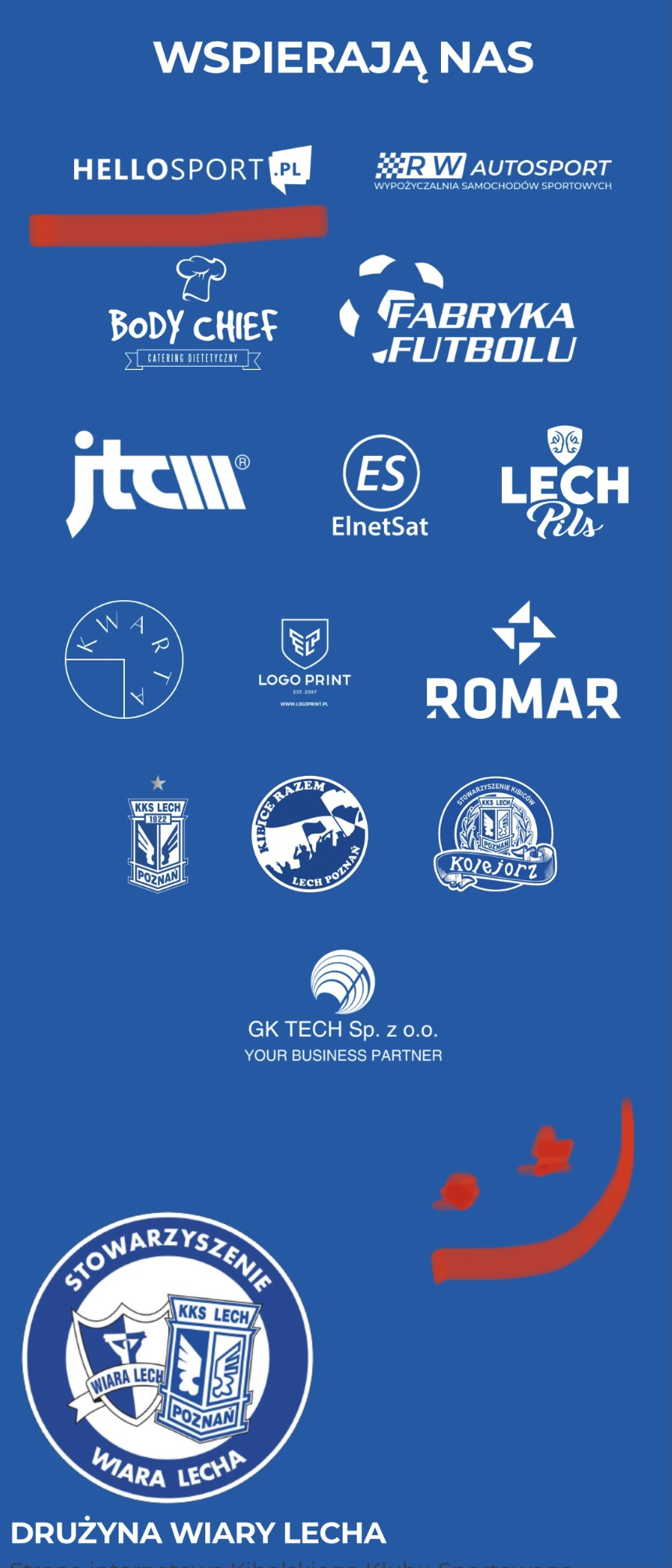 Hellosport.pl wspiera Drużynę Wiary Lecha, która składa się z kibiców Lecha Poznań oraz byłych piłkarzy tego klubu. Logo Hellosport widnieje na spodenkach zawodników.