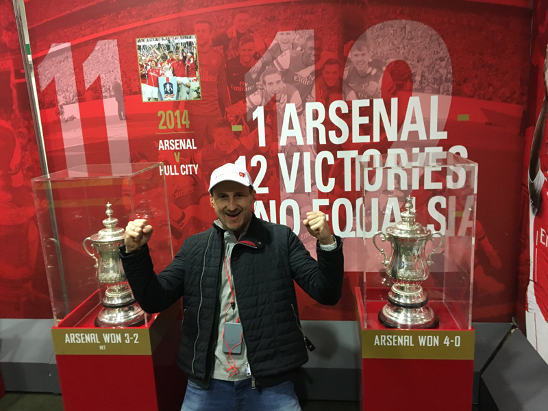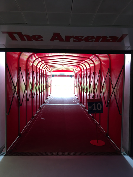 Kierując się z trybun w stronę płyty boiska, mijamy wybrane trofea, które wywalczyli piłkarze Arsenalu, aby na końcu znaleźć się w tunelu prowadzącym przed oblicza zgromadzonej najczęściej w ilości 60 tysięcy osób publiczności.