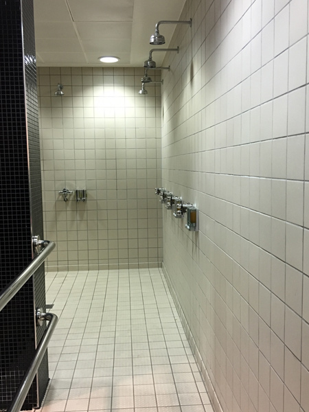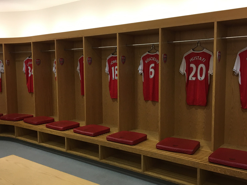 To właśnie w tym tunelu przedstawionym powyżej, często już przed samym meczem dochodzi do potyczek słownych pomiędzy zawodnikami. To tutaj często rozgrywają się sceny, których nie są w stanie uwiecznić żadne kamery. Cała psychologiczna gra ma swój początek w tym wąski korytarzu i nie raz decyduje ona o losach pojedynku. Długość tego wąskiego przejścia wynosi kilkanaście metrów i często są to ostatnie metry na których można zdobyć mentalną przewagę nad swoim przeciwnikiem. Jest to ostatnia odległość, przemierzając którą, zawodnicy drużyn przeciwnych idą ramię w ramię, po to, aby już za chwilę oddać się walce „na śmierć i życie”. Tego przynajmniej od swoich piłkarzy wymagają głodni sukcesów w ostatnich latach kibice Arsenalu. Zanim jednak zawodnicy dotrą do serca Emirates Stadium najpierw trafiają do szatni, przy której znajdują się często wspominane w swoim czasie natryski. To właśnie o arsenalskim prysznicu rozpisywały się media, które sugerowały, że przyłapano tam Wojciecha Szczęsnego (naszego reprezentacyjnego bramkarza, a niegdyś golkipera Arsenalu Londyn) z papierosem w ustach. Jeżeli wyobrażacie sobie, że tak sławne prysznice mają jakiś szczególny wygląd to bardzo się rozczarujecie. Nic specjalnego, a nie do końca nawet wiadomo ile było prawdy w opisywanej przez media „prysznicowej aferze”.
